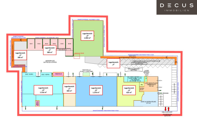 Auf dem Areal sind sowohl PKW- als auch LKW-Stellplätze verfügbar. Preis und Anzahl der Verfügbarkeit auf Anfrage.