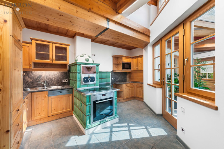- Küche mit original Holzofen mit Wasserschiff, elektrischer Ofen und allen modernen Geräten