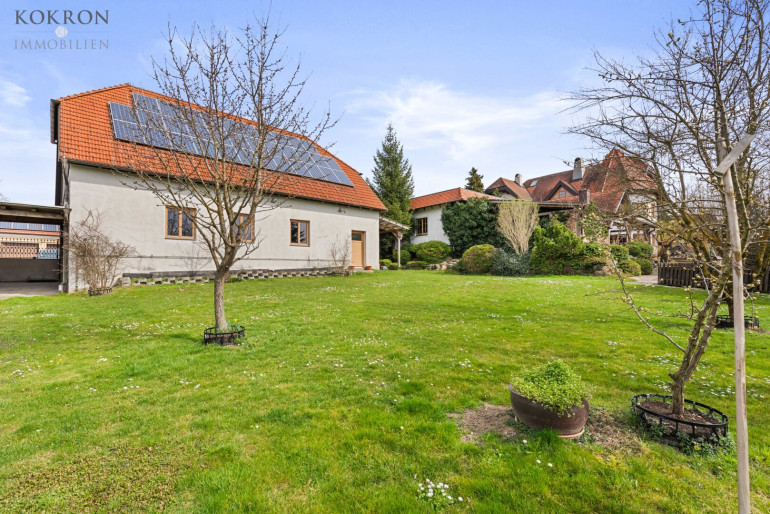 - Traumhafter Garten mit ca. 1.700 m² Fläche , Bewässerungssystem, Biotop, Wasserfall, eigener Brunnen, Obstbäume, 50 m3 Regenwasserzisterne, Rasenmähertraktor und -roboter
