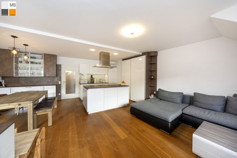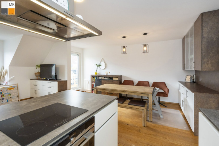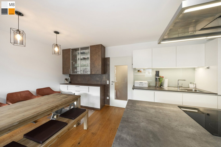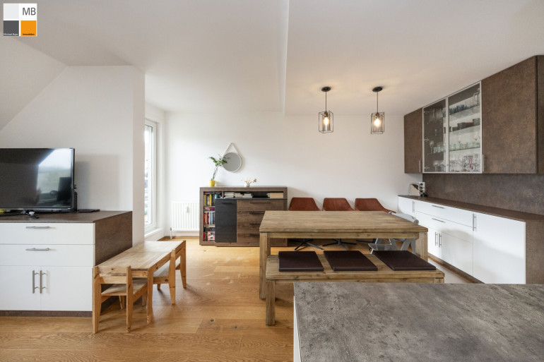Der großzügige Wohn/ Ess/ Kochbereich ist das Herzstück der Wohnung. Offen, hell und einladend – perfekt für Menschen, die gerne kochen, Gäste empfangen oder einfach das Gefühl von Weite lieben. Hier verschmelzen Alltag und Wohlfühlen zu einem harmonischen Ganzen. Außenrollläden sind elektrisch auch über APP bedienbar und die Heizung auch; extrem praktisch wenn man vom Winterurlaub heimkommt in die warme Stube :-)