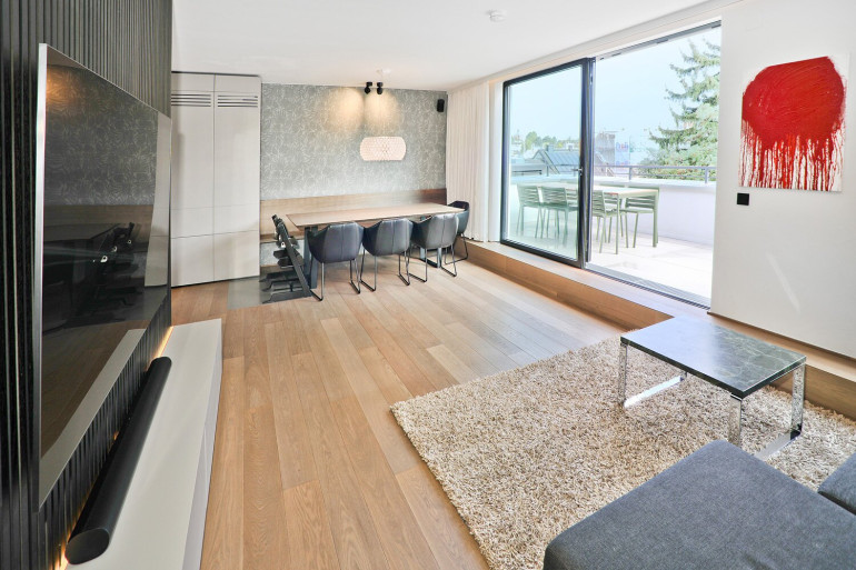 Diese außergewöhnliche Dachgeschosswohnung mit einer Fläche von knapp 140 m² wurde vom renommierten Innenarchitekturbüro TheBlackSquare konzipiert und überzeugt durch ein stimmiges Zusammenspiel aus Design, Qualität und Funktionalität.
