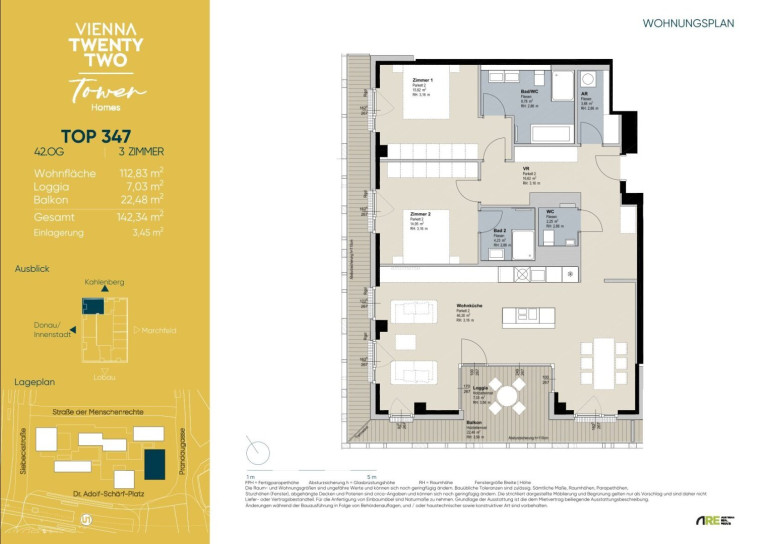 EXKLUSIVES PENTHOUSE MIT BLICK ÜBER WIEN IM 42. OG | ERSTBEZUG | VIENNA TWENTYTWO | AB APRIL 2026