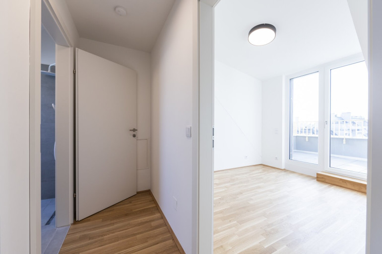 Die Wohnungen verfügen über große, bodentiefe Fenster, die viel natürliches Licht hereinlassen und für eine angenehme Wohnatmosphäre sorgen. Hochwertige Materialien wie Parkettböden in den Wohnbereichen und moderne Fliesen in den Badezimmern unterstreichen den gehobenen Anspruch des Objekts. Je nach Stockwerk bieten die Wohnungen eine wunderbare Aussicht auf die grüne Umgebung oder die beeindruckende Skyline der Donau City.