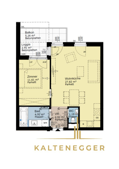 - Wohnung mit Wohnküche, Schlafzimmer, Bad, WC