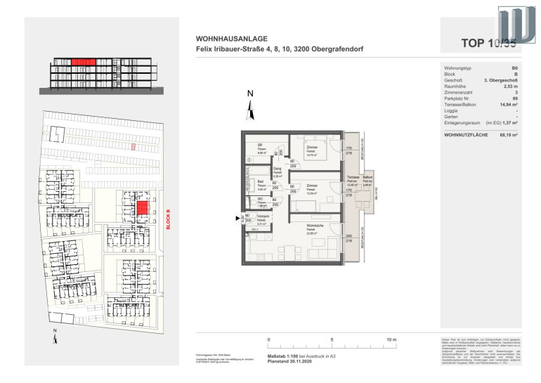 Willkommen in Ihrem neuen Zuhause in Ober-Grafendorf, Niederösterreich! Diese neuwertige 3-Zimmer-Etagenwohnung im 1. Dachgeschoss bietet auf großzügigen 68,19 m² modernen Wohnkomfort gepaart mit einer traumhaften Lage.