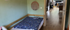 The kitchen is fully equipped and seamlessly integrated into the living space. A free-standing wood stove adds a warm and inviting atmosphere.