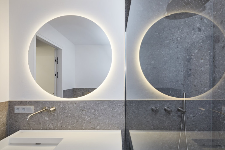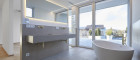 Die Bäder sind in zwei verschiedenen Farbkonzepten ausgeführt. Das On-Suite Badezimmer des Master Bedrooms ist Teil der Gold Brushed Reihe. Das zweite Badezimmer sowie die Gästetoilette sind Teil der Natural Reihe. Jedes Badezimmer sowie die Toiletten sind mit feinsten Designer Armaturen und nobelster Ausstattung des italienischen Herstellers "Vallone" ausgestattet.