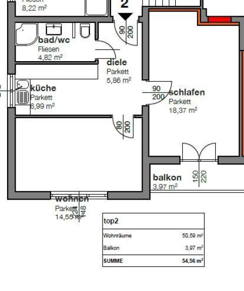 Parkett, Zentralheizung, Einbauküche, Ostbalkon, Dusche, DV-Verkabelung, Kabel/Satelliten-TV, Carport