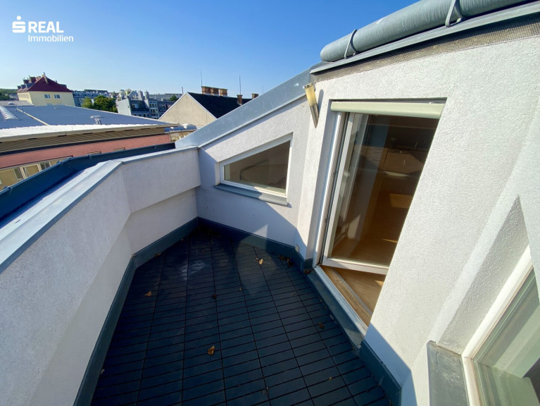 Dachausbau, ca. 40 m² Wohnsalon, 2 Schlafzimmer und ca. 6,5 m² Eckterrasse