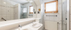 - Badezimmer mit Fenster, Dusche, Badewanne und Doppelhandwaschbecken