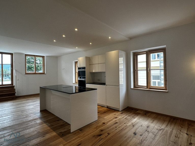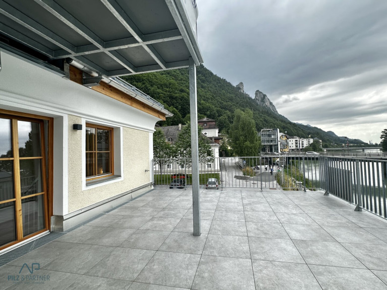 Großzügiges 2-Zimmer-Dachterrassen-Domizil mit vielen Extras: Kaminofen, Fußbodenheizung, großes Bad mit barrierefreier XL-Dusche, Extra-WC, dreigeteiltes Wohnzimmer mit offener, moderner Küche und last but not least die 50 qm große Riesen-Terrasse mit Panorama von den Barmsteinen über die Salzach bis zur Tennengauer Bergwelt, Lage direkt am Salzach-Kai. Kurze Wege zu Einkaufsmöglichkeiten und Öffis, edle Oberflächen.....