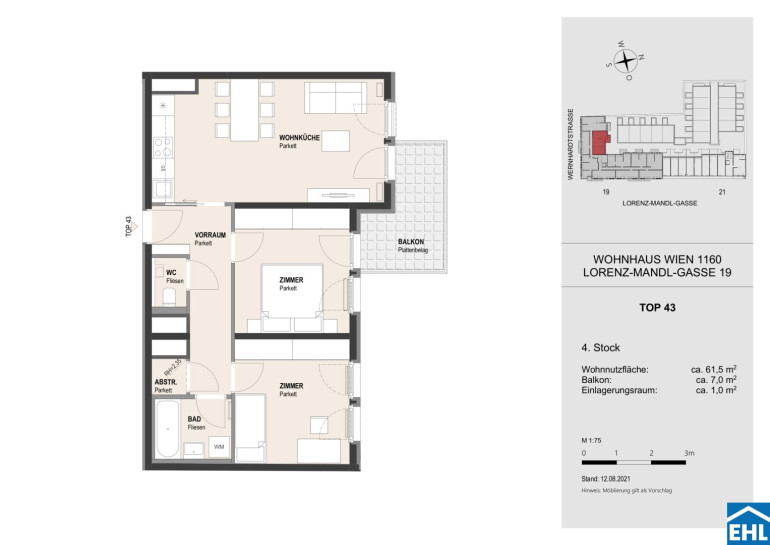 Die Wohnung befindet sich im aufstrebenden 16. Wiener Gemeindebezirk und zeichnet sich sowohl durch die großartige Anbindung in die Innenstadt sowie Infrastruktur rund um die Liegenschaft aus. Durch die in unmittelbarer Nähe befindlichen öffentlichen Verkehrsmittel, lassen sich die Innenbezirke Wiens in weniger als 20 Minuten erreichen. Optional ist es ebenfalls möglich, einen Garagenplatz um brutto 120€/monatlich anzumieten.