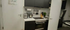 Das Wohn- und Esszimmer verfügt über eine hochwertige Innenausstattung, welche unter anderem einen maßgefertigten Einbauschrank sowie eine voll ausgestattete Einbauküche (Geräte der Firma Miele) samt eingebautem Esstisch umfasst. Das Bett ist räumlich durch einen Einbauschrank etwas abgetrennt.