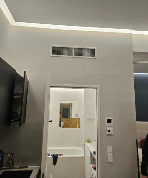 Eine mechanische Raumbelüftung ist im Bad vorhanden.