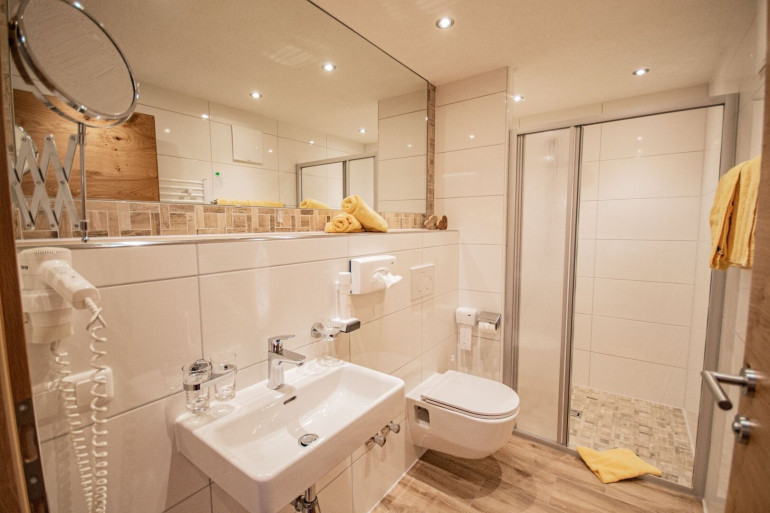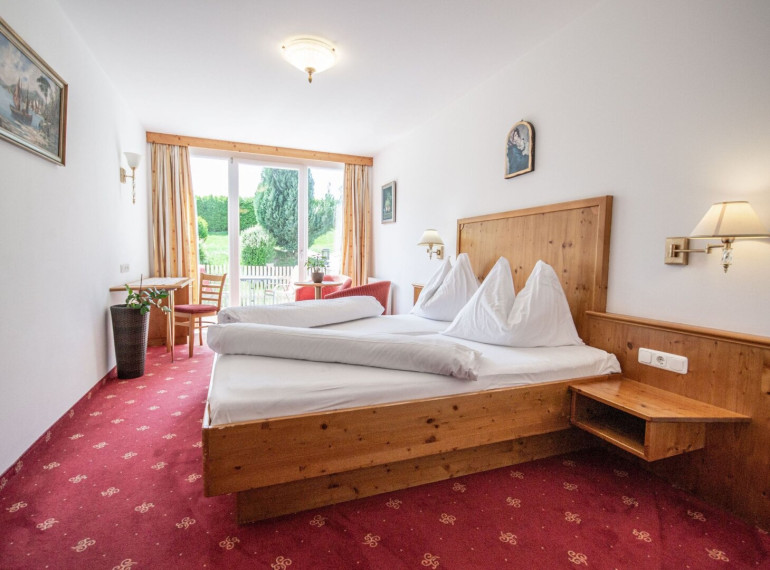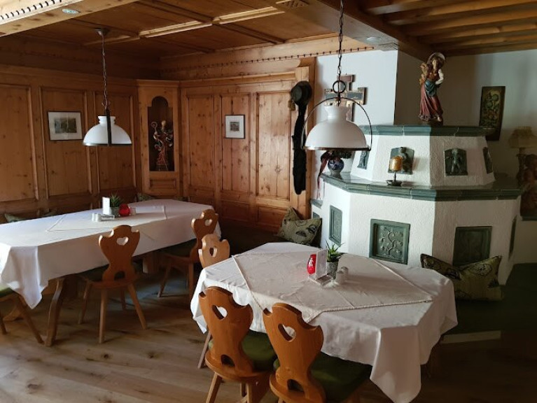 Die Hang-Lage ist sonnig, mit freiem Blick auf die umliegende Tiroler Bergwelt — ideal für Ausfluggäste, „Nachtler“-Gäste auf einem Stopp Richtung Süden, Motorradfahrer und Busgruppen.