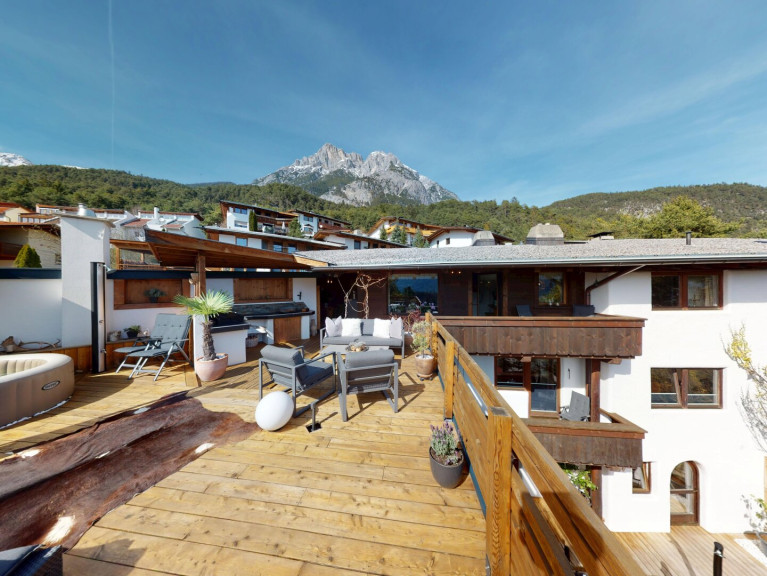 Ein besonderes Highlight ist die großzügige Dachterrasse, die zusätzlichen Freiraum bietet und einen einzigartigen Platz mit Blick über Telfs schafft.