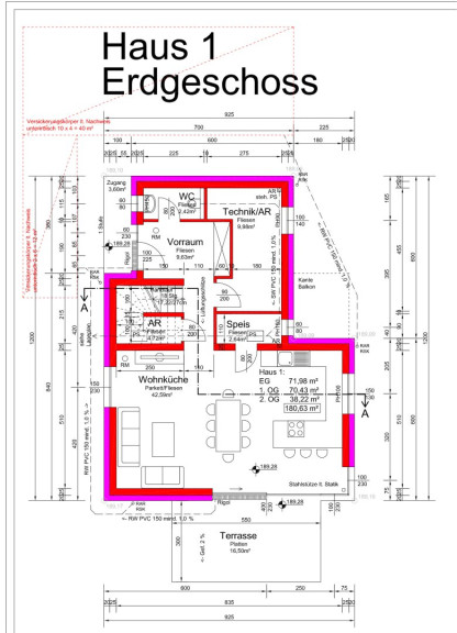 Haus 1: Gesamtwohnfläche: 180,63 m²