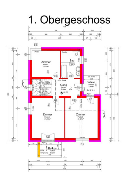 1.OG: 70,09 m² Wohnfläche; Balkon: 11,46 m²