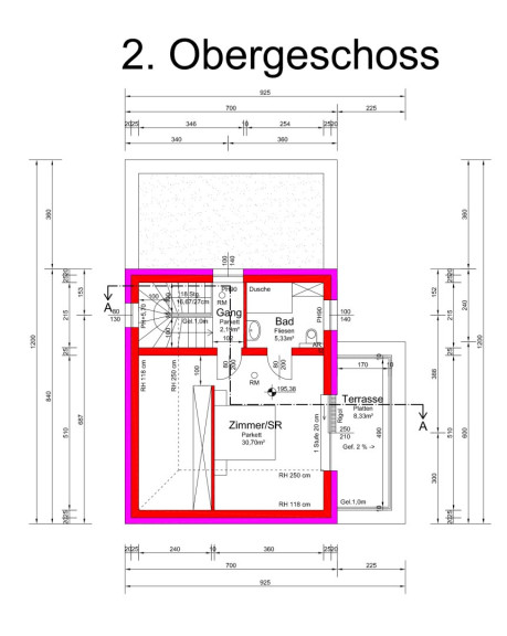 2.OG: 33,8 m²; Terrasse 20,24 m²
