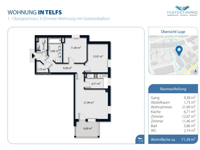 Wohnfläche: ca. 71,39 m²