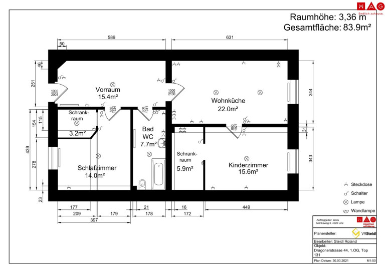 Die Wohnung befindet sich in einer gut angebundenen und gleichzeitig angenehm ruhigen Wohngegend von Wels. Die Dragonerstraße zeichnet sich durch ihre zentrale Lage mit hervorragender Infrastruktur aus.