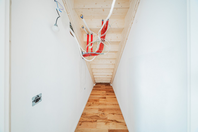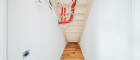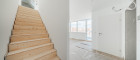 Eine elegante Treppe führt in die zweite Ebene der Wohnung, die sich als privater Rückzugsbereich präsentiert.