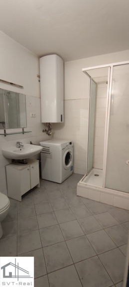 Bad mit Dusche, WC, Waschbecken