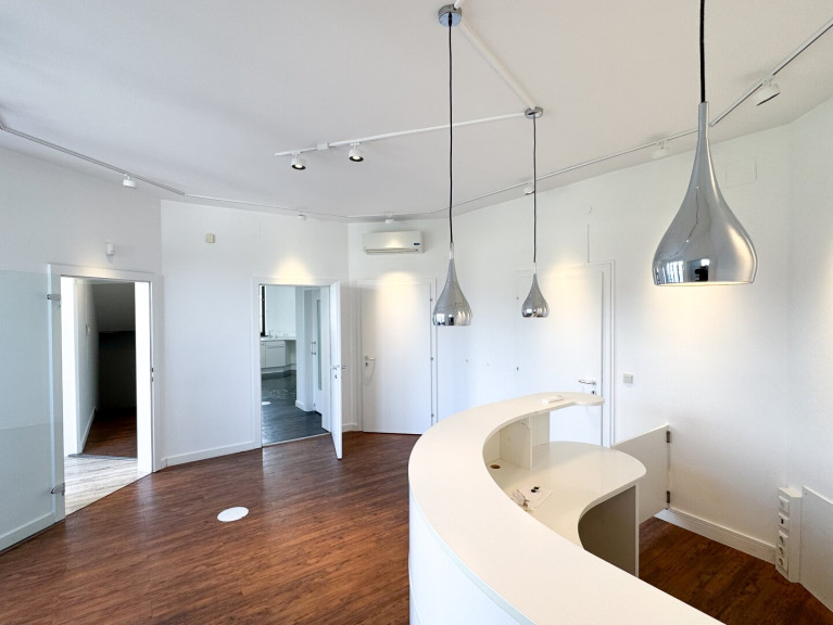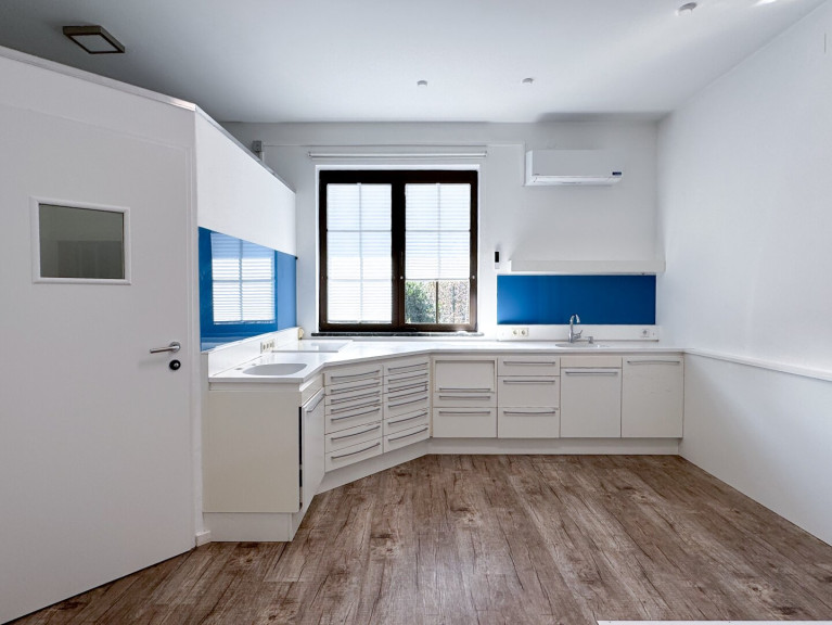 Zuletzt waren die Räumlichkeiten als Arztpraxis genutzt und wurden für die Neuvermietung adaptiert. Die Räume verfügen über Holz- und Natursteinböden, in den Neben- u. Abstellräumen über PVC-Belag. Die beiden Ebenen sind auch mit einem Lastenaufzug verbunden, es besteht eine Alarmanlage, der Zugang ist mit Transponder Key sperrbar.