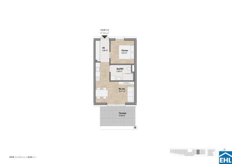 | Heizwärmebedarf: | A+ 28,20 kWh/m²a |
