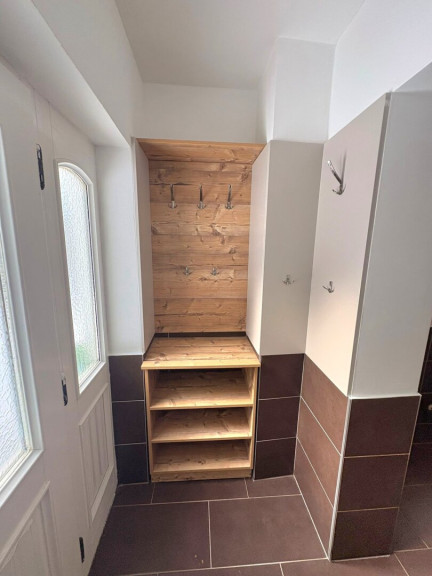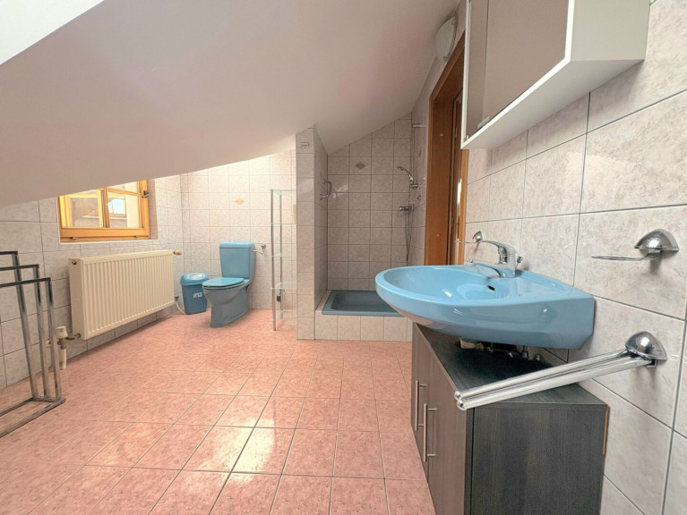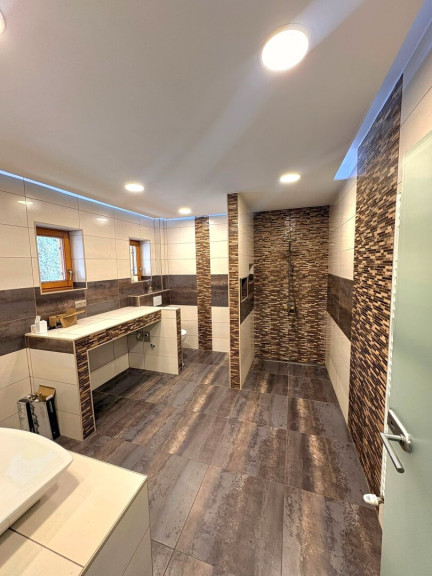 Im Erdgeschoss (ca. 86,26 m²) befindet sich ein neu errichtetes Badezimmer mit Dusche, Doppelwaschbecken, WC, Waschmaschinenanschluss und viel Licht. Ebenfalls laden die großzügige Küche, ein Wohn-Esszimmer und ein Schlafzimmer im Erdgeschoss zum gemütlichen Wohnen ein. Das Wohnzimmer kann mit einem Holzofen extra beheizt werden.