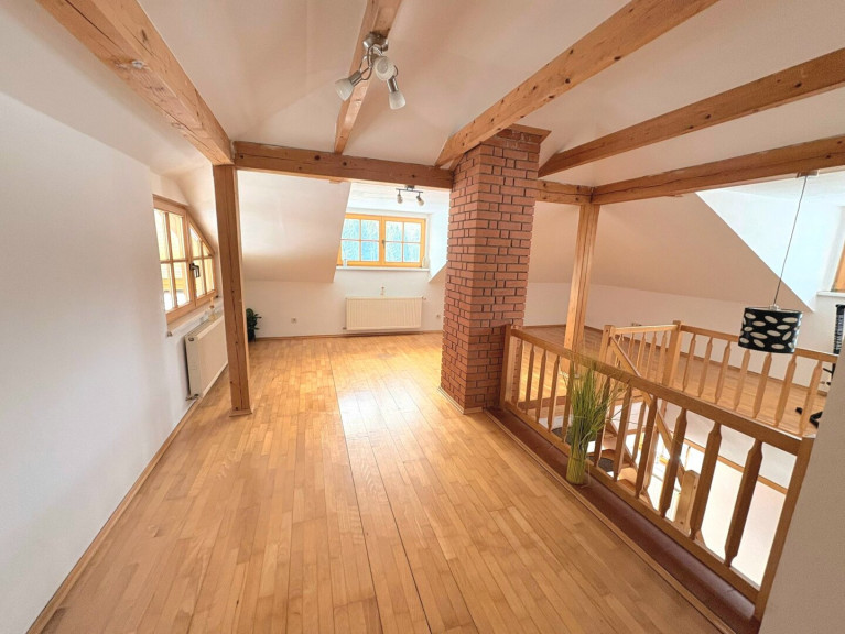Über die schöne Holztreppe gelangt man in einen großen, offenen Raum. Ein Badezimmer mit Dusche und Badewanne, ein Schlafzimmer und eine Sauna bieten Ihnen viele Möglichkeiten im Obergeschoss. ca. 74,41 m²