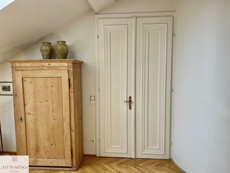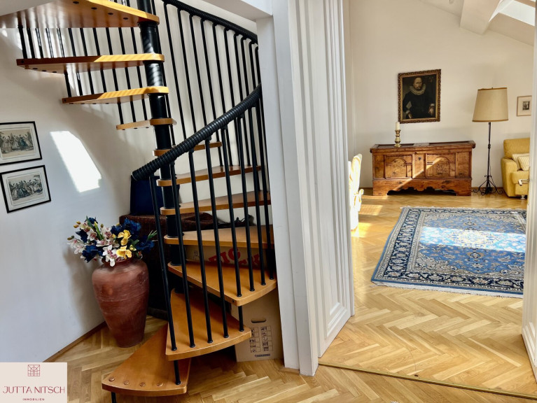 In einem charmanten Jugendstilhaus wird im 5. Liftstock eine wunderschöne, ruhig gelegene Dachterrassenwohnung mit einem Garagenplatz verkauft. Die Architektenwohnung wurde im Jahre 1995 auf das Wohnhaus neu aufgebaut und bietet einen durchdachten Schnitt.