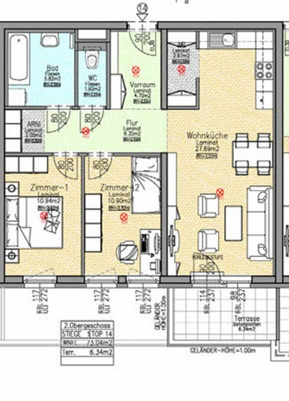 Die Wohnung verfügt über ca. 73 m² Nutzfläche und einen Balkon. Die Wohnräume sind mit Laminatboden, die Nassräume mit Fliesen ausgestattet. 3-fach-verglaste Fenster sorgen für angenehmes Raumklima.