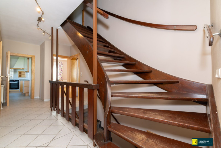 Das Erdgeschoss verfügt über ein Esszimmer mit Einbauküche, ein Wohnzimmer mit Zugang zum Wintergarten und einem Kachelofen, sowie zwei weitere Zimmer, die sich ideal als Schlaf- oder Kinderzimmer nutzen lassen.