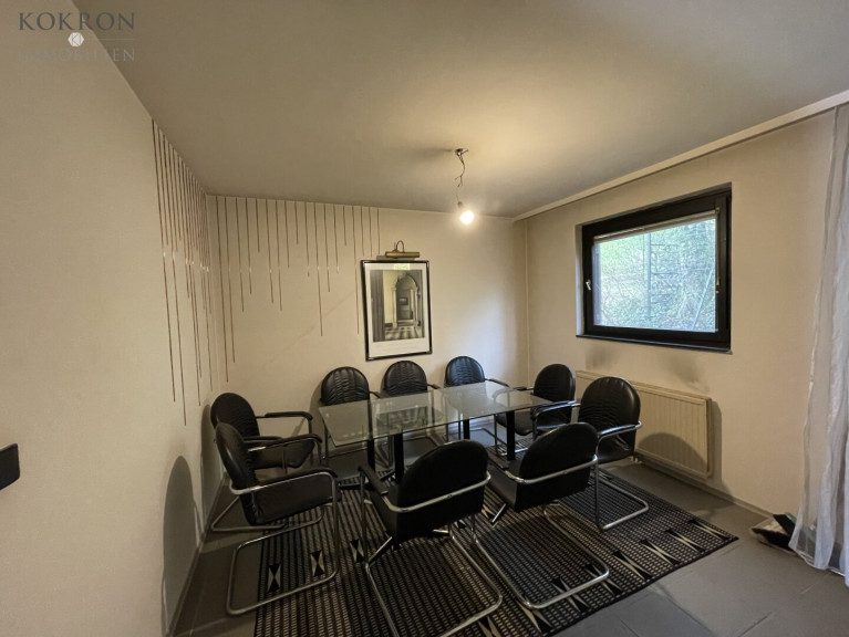 Im Erdgeschoss befinden sich das zentrale Vorzimmer, Wohnzimmerzimmer mit Schwedenofen und großem Terrasse mit südseitigem Grünblick, der Essbereich mit Ausgang in den Eigengarten, die Küche mit sämtlichen Geräten und ein WC.
