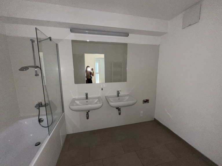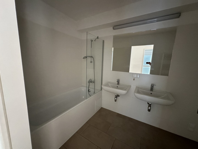 Beim Betreten der Wohnung empfängt Sie ein einladenden Flur, welcher Platz für eine gemütliche Garderobe bietet. Gleich rechts befindet sich das separate WC inkl. Handwaschbecken und das Badezimmer, welches mit einer Badewanne, zwei Waschbecken und einem Waschmaschinenanschluss ausgestattet ist. Den Gang entlang kommen Sie an zwei der separaten (Schlaf-)zimmern vorbei und gelangen zum Ende hin in den großzügigen Wohnbereich, welcher eine offene Wohnküche inkl. allen Geräten des täglichen Bedarfs umfasst. Von hier aus gelangen Sie zum dritten separaten Zimmer, welches sich perfekt als Schlaf-, Gäste- oder Arbeitszimmer eignet. Außerdem ist vom Wohnzimmer aus der Zugang zum eigenen Balkon möglich.