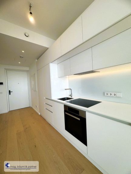 Dieses kleine, aber feine Apartment liegt im 18.Stock in einer der begehrtesten Locations der Stadt und bietet modernes Wohnen auf höchstem Niveau. Die hochwertige Tischlerküche ist mit erstklassigen Miele-Geräten ausgestattet und fügt sich nahtlos in den fast komplett verglasten Wohn-, Ess- und Schlafbereich ein. Ein weiteres Highlight ist der begrünte Balkon mit einem ausgezeichneten Ausblick. Das kompakte Badezimmer bietet alles, was man braucht: Dusche, WC, Waschtisch und einen Handtuchtrockner. Der Einbauschrank, der ebenfalls zur Wohnung gehören wird, stellt eine elegante Ergänzung der Wohnungseinrichtung dar.