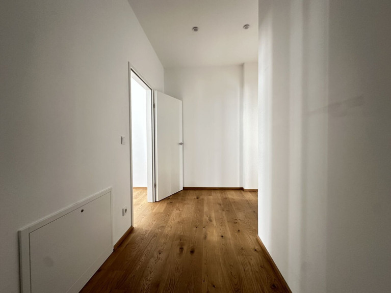 Der Grundriss ist gut durchdacht: man betritt die Wohnung, gelangt in den Vorraum, von dort in die Wohnküche – zentral gelegen –, die Freifläche (der Balkon) ist direkt angebunden. Die Schlafzimmer sind separiert, sodass Ruhe gewährleistet ist.