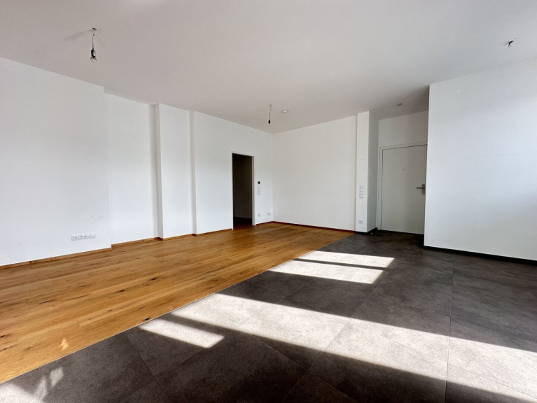 Das Raumprogramm: Großzügige Wohnküche (ca. 33,05 m²), ein Schlafzimmer (ca. 10,04 m²), ein weiteres Zimmer (ca. 9,67 m²), ein Schrankraum (ca. 8,33 m²), ein Bad/Dusche (ca. 4,95 m²) sowie ein extra WC und ein Vorraum.