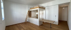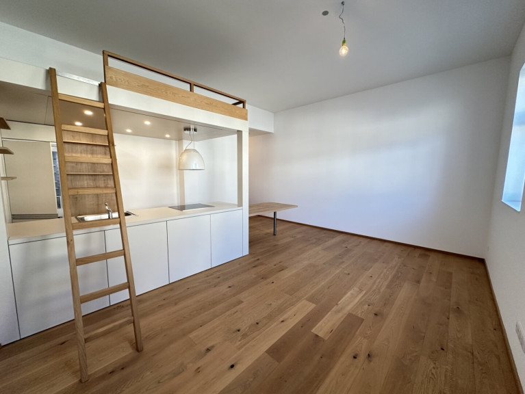 • Wohn-/Schlafbereich mit integrierter Kochnische und fix verbautem Hochbett – platzsparend & gemütlich