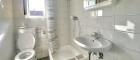 Das Badezimmer ist mit einer Dusche, einem Waschmaschinenanschluss, einer Toilette sowie einem Fenster in Richtung Osten ausgestattet. Somit können Sie den Raum nach einer heißen Dusche gut lüften.