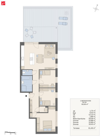 Im Angebot haben wir für Sie eine großzügige 4-Zimmer-Wohnung im 2. Obergeschoss (Top 09) mit durchdachter Raumaufteilung und großzügiger, sonniger Außenfläche.