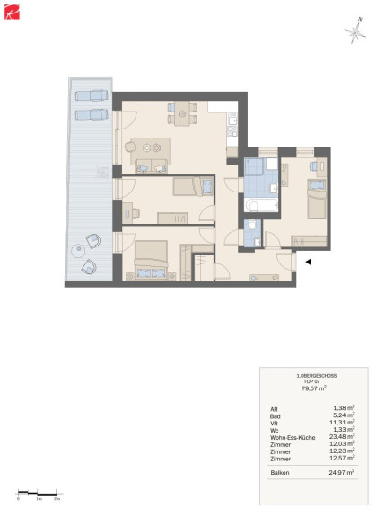 Im Angebot haben wir für Sie eine großzügige 4-Zimmer-Wohnung im 1. Obergeschoss (Top 07) mit durchdachter Raumaufteilung und großzügiger, sonniger Außenfläche.