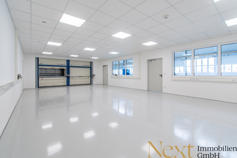 Im Hallenteil 2 sind zwei Büro- bzw. Laboreinheiten integriert. Der erste Bereich umfasst mehrere Büro-, Technik- und Laborräumlichkeiten und ist mit einem Paternosteraufzug ausgestattet, wodurch ein effizienter Material- und Warenfluss gewährleistet wird. Sämtliche Räume sind belüftet und klimatisiert und verfügen zudem über entsprechende Sanitäranlagen.