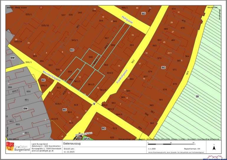 - Bebauungsdichte, Bauhöhe, Baulandbeschränkungen, Wohneinheiten: Bebauung gemäß der Burgenländischen Bauordnung