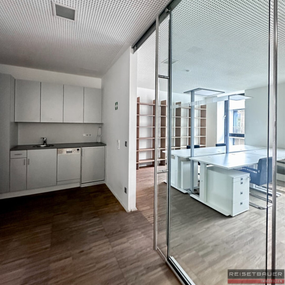 Die großzügigen Glasfronten sorgen für eine helle und freundliche Arbeitsatmosphäre. Auf Wunsch kann das bestehende Mobiliar übernommen werden, was eine ideale Gelegenheit für einen sofortigen und unkomplizierten Einzug bietet.