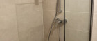 Modernes Badezimmer mit Dusche und Waschmaschinenanschluss