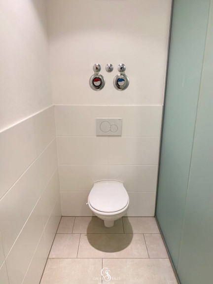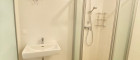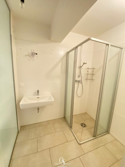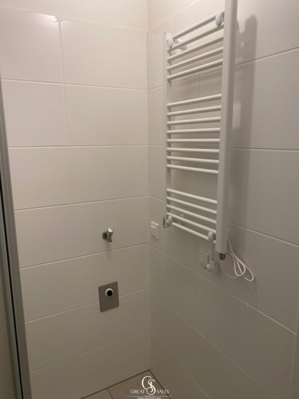 - Badezimmer mit Dusche, Handtuchheizkörper & Waschmaschinenanschluss