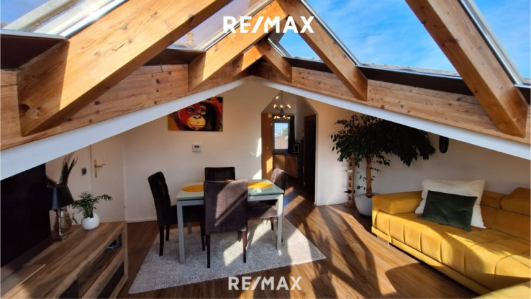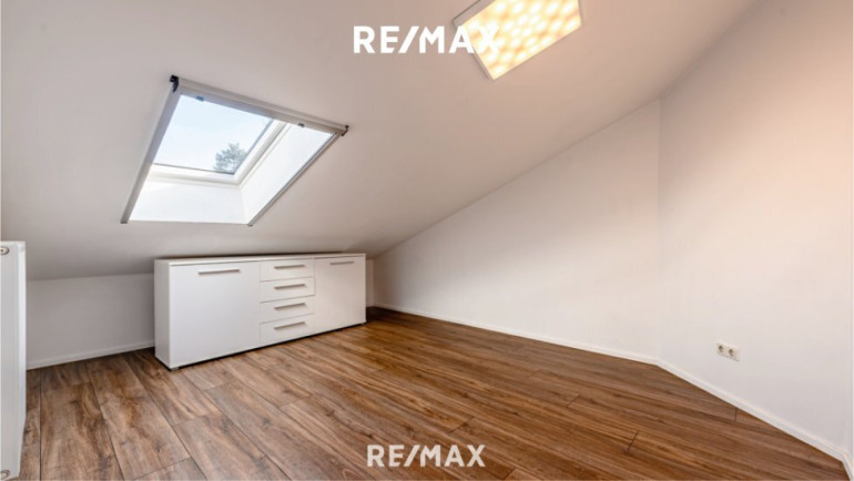 Für höchsten Wohnkomfort (auch an heißen Tagen) sorgen die integrierte Klimaanlage sowie Rollläden. Ein gemütliches Schlafzimmer sowie ein weiteres Zimmer mit großen Dachschrägfenstern bieten flexible Nutzungsmöglichkeiten, ob als Kinder-, Arbeits- oder Gästezimmer.
