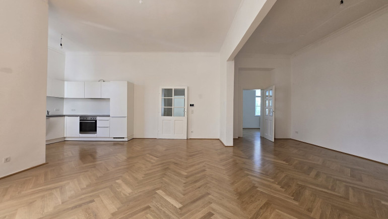 Sie ist mit hochwertigen Parkettböden und einer einer offenen Küche ausgestattet, das zweite Zimmer ist mit ca. 17 m² auch sehr geräumig.
